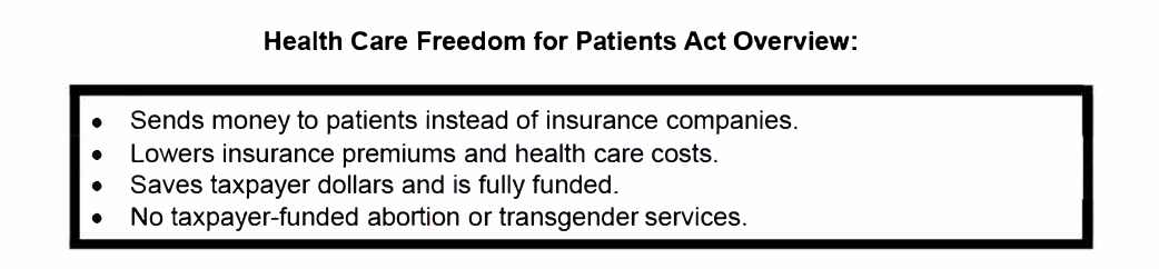 The text of the bill calls our healthcare “wasteful spending.”