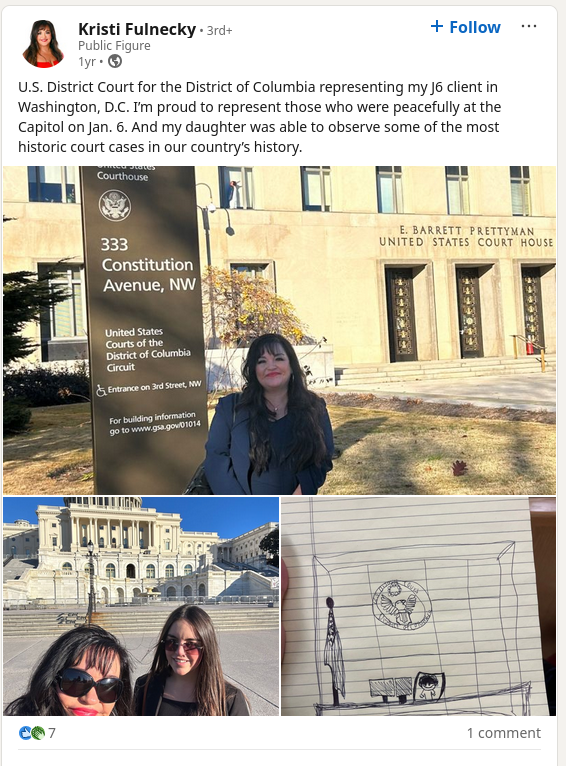 Samantha Fulnecky, the student whose complaint started all this, is the daughter of Kristi Fulnecky, a lawyer who represented clients who were at the January 6th attempted coup.