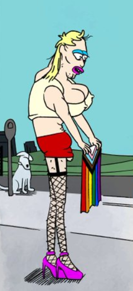 Why is this literal transphobic caricature from a conservative political cartoonist somewhat kinder to the transfeminine subject (by virtue of less body hair and less dramatized masculine features) than the media meant to be fighting for our dignity?