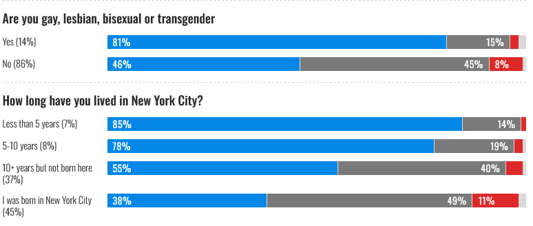 The slightly less cynical point is that these results show that the voter base of NYC is substantially different from that of the rest of the country.